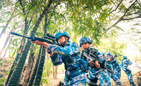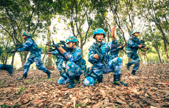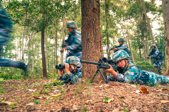 近日,海军陆战队某旅女子侦察班在粤东某陌生地域,展开了一场全要素破袭演练。侦察班呈战斗队形穿梭在密林深处,同时利用无人机进行不间断空中巡视,及时掌握“敌”动向,经历重重阻碍,成功灭“敌”。