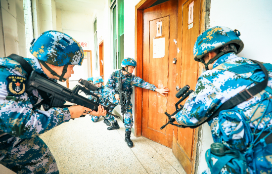 班组密切协同,对废弃楼内的“敌人”进行搜索。赵志浩 摄