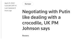 (路透社:英国首相约翰逊称与普京谈判就像和“鳄鱼”打交道)