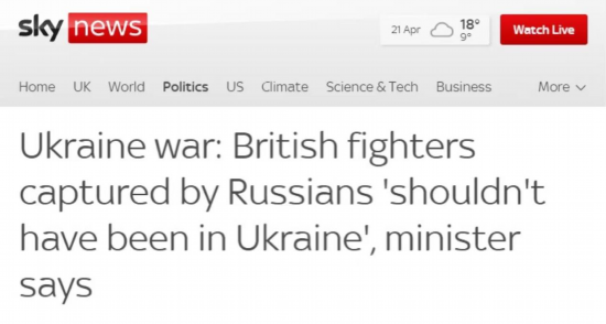 当被进一步追问有关这些在乌克兰的英国雇佣兵的问题时,刘易斯又表示:“他们不应该在那里(乌克兰),在那里是非法行为,”“显然,任何人都会同情被劫持的人质,但我们必须确保遵循适当的程序,以正确的方式处理这件事。”
