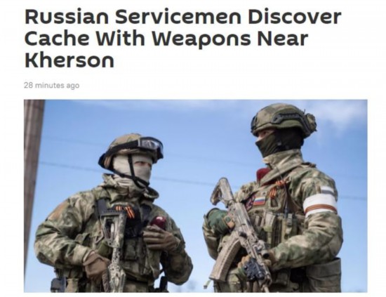 海外网4月21日电据俄罗斯卫星通讯社21日报道,俄军在一次突袭乌克兰行动中,在乌克兰赫尔松地区一处村落发现了一个武器藏匿点,武器包括榴弹发射器、机枪和突击步枪。