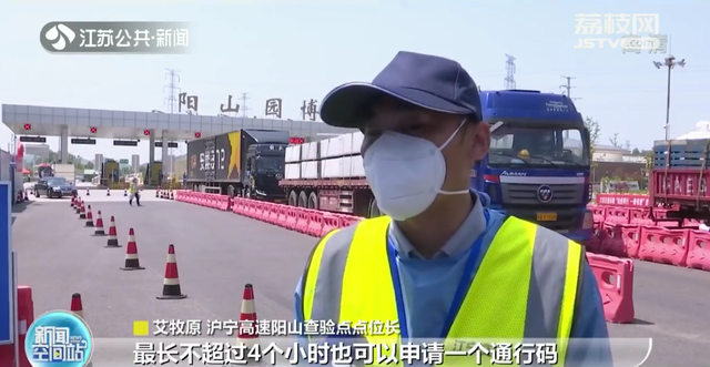 沪宁高速阳山查验点点位长艾牧原表示:“重点疫区来宁的车辆进行预约申请之后,预约信息需要当地街道以及接货单位的审核,最长不超过4个小时也能申请一个通行码。经过扫码核验之后,我们会转运至缓冲区进行一个闭环管理。”