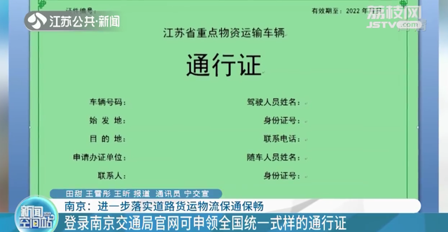 【登录南京交通局官网可申领全国统一式样的通行证】