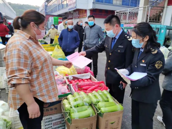 4月20日,盱眙县市场监管局到山城农贸市场,对蔬菜批发经营者开展价格提醒告诫,发放《价格提醒告诫函》,要求杜绝随意涨价,维护市场价格秩序。