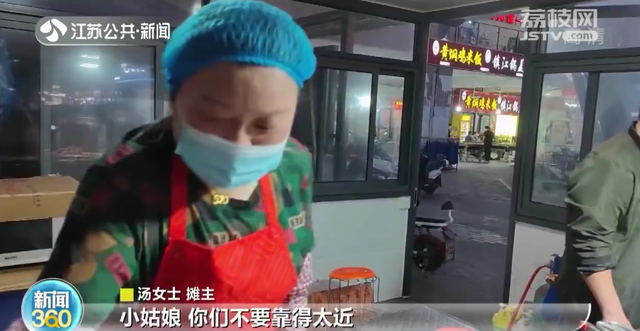 摊主汤女士:“小伙子小姑娘,你们口罩没戴好,还有不要靠得太近,站在一起排队的时候稍微离开一点,生意应该是越来越好了。”