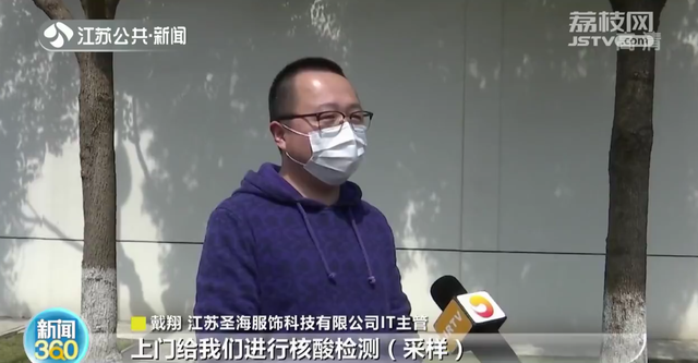 江苏圣海服饰科技有限公司IT主管戴翔说:“已经持续一周,每天都有我们的医院人员上门给我们进行核酸检测采样。”