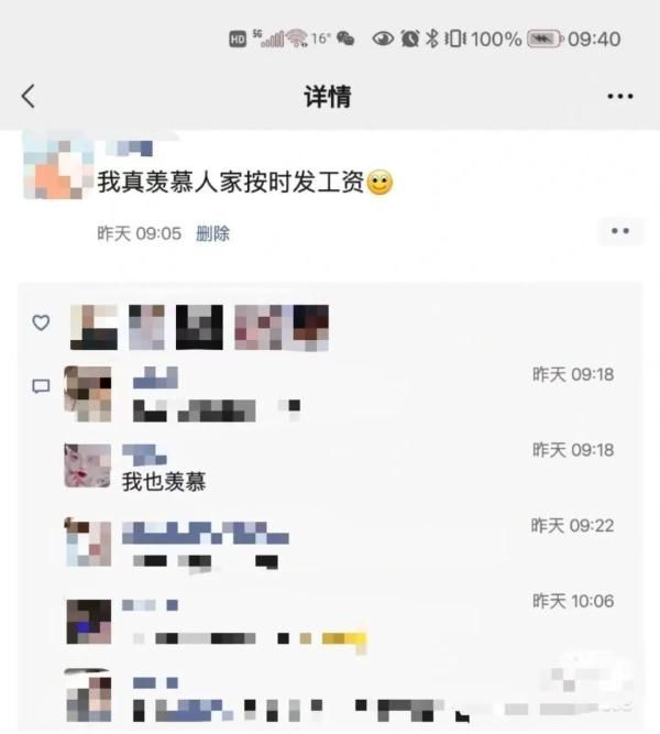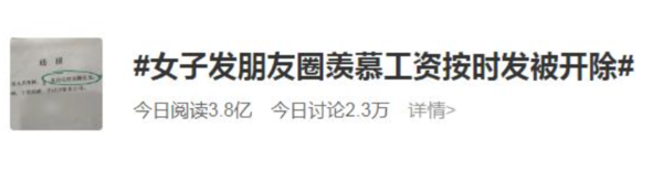 4月21日,有网友发帖称,20日早上因为朋友打电话说到他们发工资的事,自己发了朋友圈,内容为“我真羡慕人家按时发工资”,结果当日下午就被开除,同事因为评论一句“我也羡慕”,也被开除了。