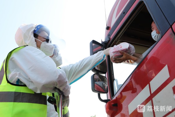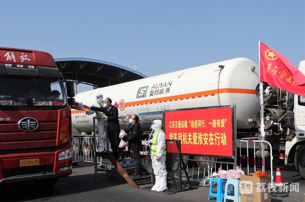 “师傅,你们日夜兼程地保运输、保供应,辛苦了!这是我们准备的一点心意,感谢您对疫情防控工作的理解和支持!”“您近期有哪些意见?我们将及时改进工作。”4月21日上午,几名货车司机在淮安南高速卡口接受疫情防控查验后,收到了装有泡面、口罩等生活物资与防疫用品的暖心礼包和亲切问候。