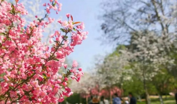 看深深浅浅的海棠花簇拥枝头