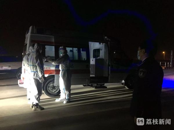 4月23日凌晨2时10分左右,在现场海事和渔政执法人员的指挥下,“苏赣渔XX”渔船成功靠泊大丰港海事码头。现场执法人员随即将防护服、隔离面罩、消毒酒精等防疫用品送至船上,待受伤渔民及陪护人员穿戴好防护用品后成功登岸。早已等候在此的医护人员第一时间查看伤口情况,并采取止血、包扎等措施,伤者随即被救护车转运至大丰区人民医院接受进一步治疗,目前情况稳定。