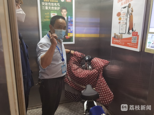 “您好,电梯内禁止电动车,谢谢您的配合……”在玄武区丹凤新寓记者看到,小区电梯内安装了智能管理系统,如果有市民把电动自行车推进电梯,就会立即传来“报警”声,并且电梯门无法关闭,通过科技手段将电动车火灾隐患“拒之门外”。