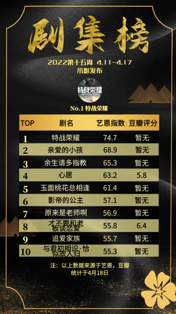 几部大剧的长尾效应仍在,《余生,请多指教》《心居》依旧出现在周榜中,刚刚完结的《追爱家族》稳定收官。