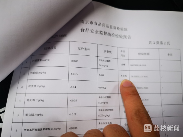此外被曝光的农兽药残留问题还包括黄鳝、牛蛙、辣椒等农产品。“针对监督抽检中发现的不合格食品,市场监管部门已通知相关区局立即组织开展处置工作,采取下架召回不合格食品等措施控制风险;对违法违规行为,依法处理;及时将企业采取的风险防控措施和核查处置情况向社会公开。”南京市市场监管局食品安全抽检监测处副处长孙静说。