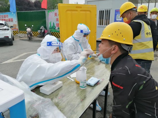 4月20日一早,淮海国际港务区庞庄街道建筑工地核酸检测小分队便来到工地现场。为助力辖区内6个陆续复工的工地做好疫情防控,庞庄街道办事处组织街道建设办、徐矿三院、抗疫志愿者等工作人员把核酸检测采样点“搬到”工地内,每天为闭环管理的400多名管理和施工人员进行核酸采样,采样率达到100%。