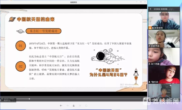 为了让学生时刻铭记历史、传承航天精神,根植拥抱星辰大海的信念与情怀,苏州市吴门教育集团沧浪新城第四实验小学通过线上升旗仪式和云班会的形式,带领学生了解中国航天日的由来,设立的意义,中国航天事业的发展史等航天知识,体会中国航天精神。
