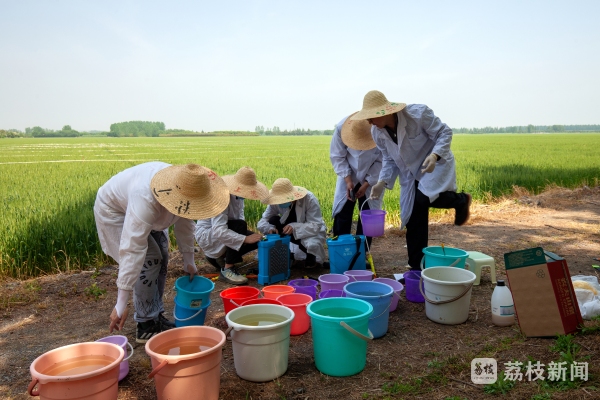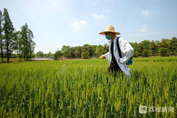 4月24日,南京农业大学侯毅平教授带领四位研究生在南京汤泉农场,对抽穗扬花期的小麦进行了第二次施药试验。