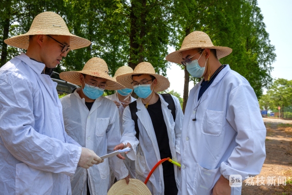 从2022年4月19日起,侯毅平教授带领郑仕奕、温伟东、许崇敬和桂帅等四位研究生在南京汤泉农场进行小麦赤霉病新型绿色高效杀菌剂及其组合物的筛选,他们把田块划分成若干个相同面积的试验小区,将前期在室内筛选到的绿色高效杀菌剂及其组合物喷施到设定的试验小区中,以期为防控小麦赤霉病提供有效途径。