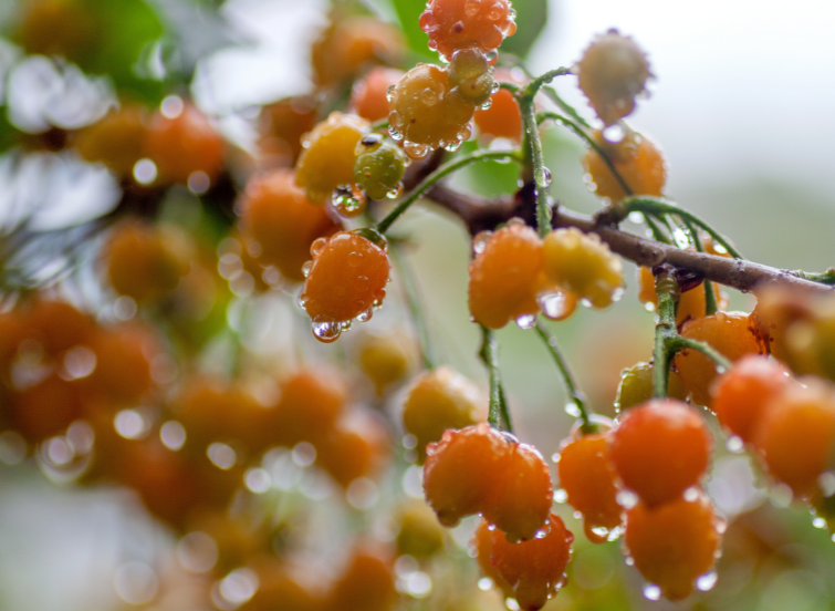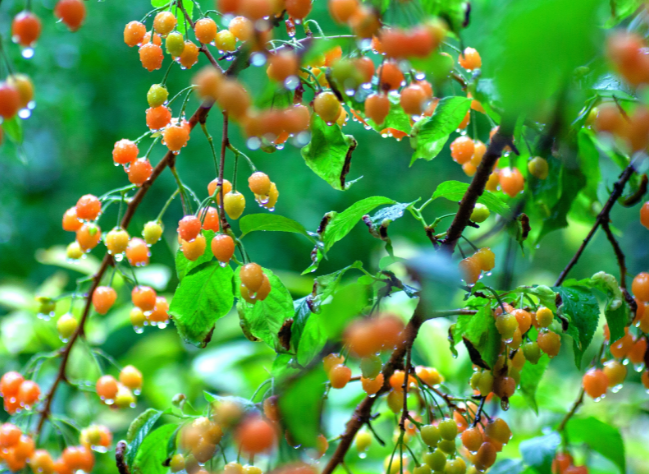 4月25日早上,一场雨过后,南京江宁区某小区里的樱桃被雨水洗礼后一尘不染,挂满雨水的樱桃晶莹剔透、饱满丰腴,十分诱人,一口下去汁水四溢,个中滋味,鸟儿更清楚,它们大快朵颐,叽叽喳喳开着品赏会,颇为热闹。