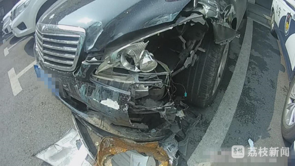 事故发生在3月底,晚上9点多,在江宁小龙湾桥路段由南向西方向,一辆黑色奔驰轿车撞向中央护栏,导致20多米护栏严重损坏,散乱在整个路面,同时过往的另外两辆车车胎被爆,肇事车辆也损坏严重,但肇事车辆直接穿越逆向行驶,在前方调头加速油门逃离现场。接到报警后,东山交警中队立即进行布控查缉,10时30分在某小区路段将肇事车辆查获,此时一名女子赶紧跑到现场自称肇事司机,由于紧张才逃离现场。