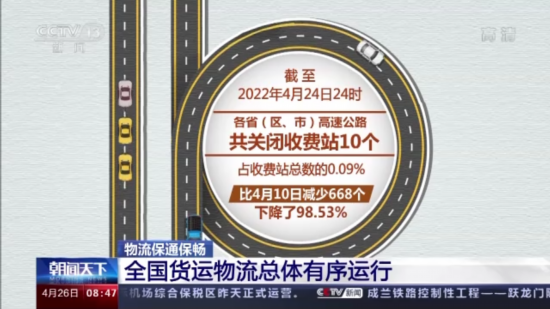 国务院物流保通保畅工作领导小组办公室最新发布的数据显示,目前,全国货运物流总体有序运行。