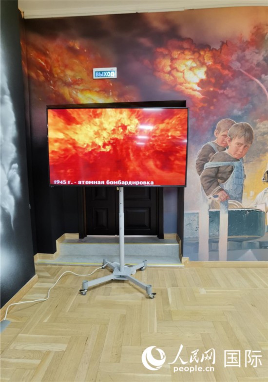 展览现场介绍北约历史罪行的大屏幕。人民网记者 荣翌摄