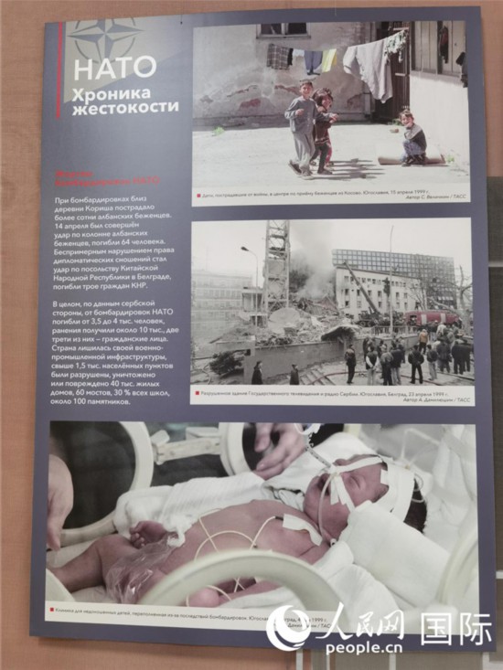 现场展出的揭露北约暴行图片。人民网记者 荣翌摄