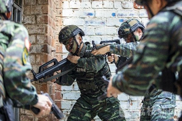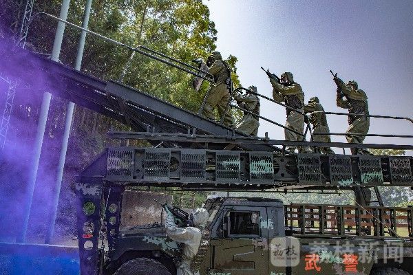 近日,武警广西总队机动支队组织多种专业分队开展协同演练。
