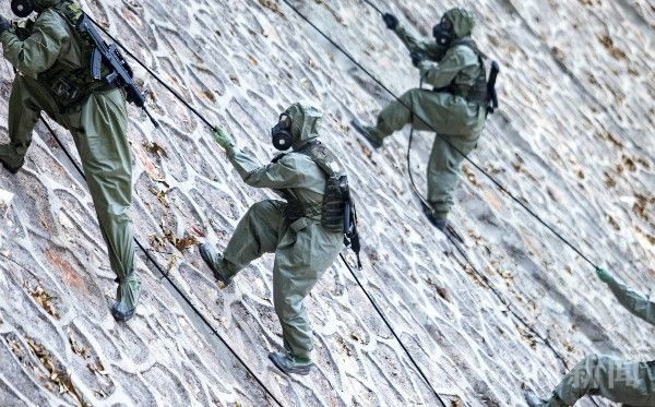 演练伊始,某特战小队奉命对“敌”火力点实施突击。特战队员通过“敌”前沿障碍区时,突遇“敌”释放有毒气体。