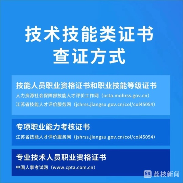 记者获悉,为深化职称制度和人才分类评价改革部署要求,巩固职业技能提升行动成果,服务广大技术技能人才便捷获取培训评价信息,从今年4月底起,江苏省人力资源和社会保障厅将动态、分批发布经认定合规有效的培训评价评审机构目录和认定考试计划相关公告,具体为:《职业技能等级认定机构目录》公布“机构名称、联系方式和可开展认定的职业等级”等、《职业技能培训机构目录》公布“学校名称、地址和可开展培训的职业等级”等、《高级职称评审计划》公布“年度高级职称评审委员会名称、评审范围和权限、联系方式以及预计评审时间”等、《职业技能等级认定批次计划》公布“考试时间、考点和评价申报条件”等、《人事考试计划》公布“考试名称和预计考试时间”等信息。