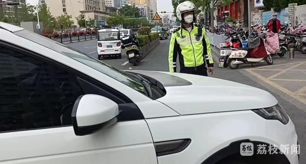 接警后,民警郭志华携两名警辅立即发动警车在路边等候,不多时,有一辆私家车打着双闪疾驰而来。