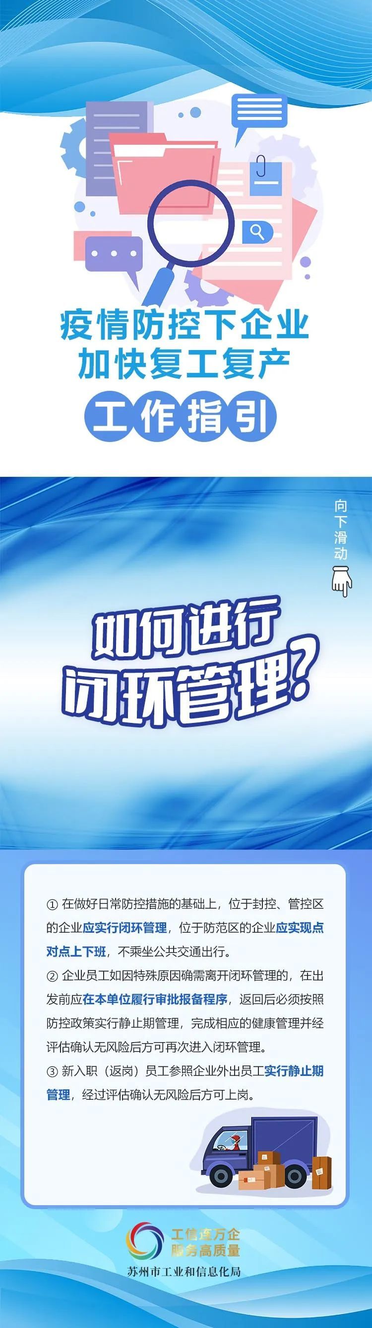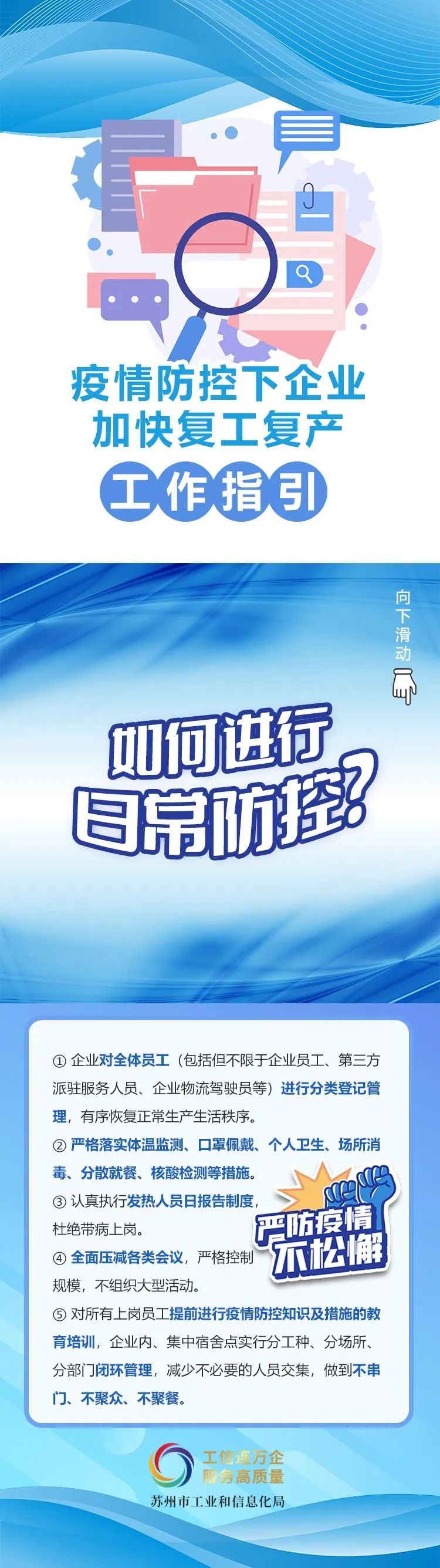 为统筹推进疫情防控和经济社会发展,鼓励和支持企业建立常态化疫情防控措施,有力有序复工复产,我市出台疫情防控下企业加快复工复产的工作指引,企业具体该如何做呢?