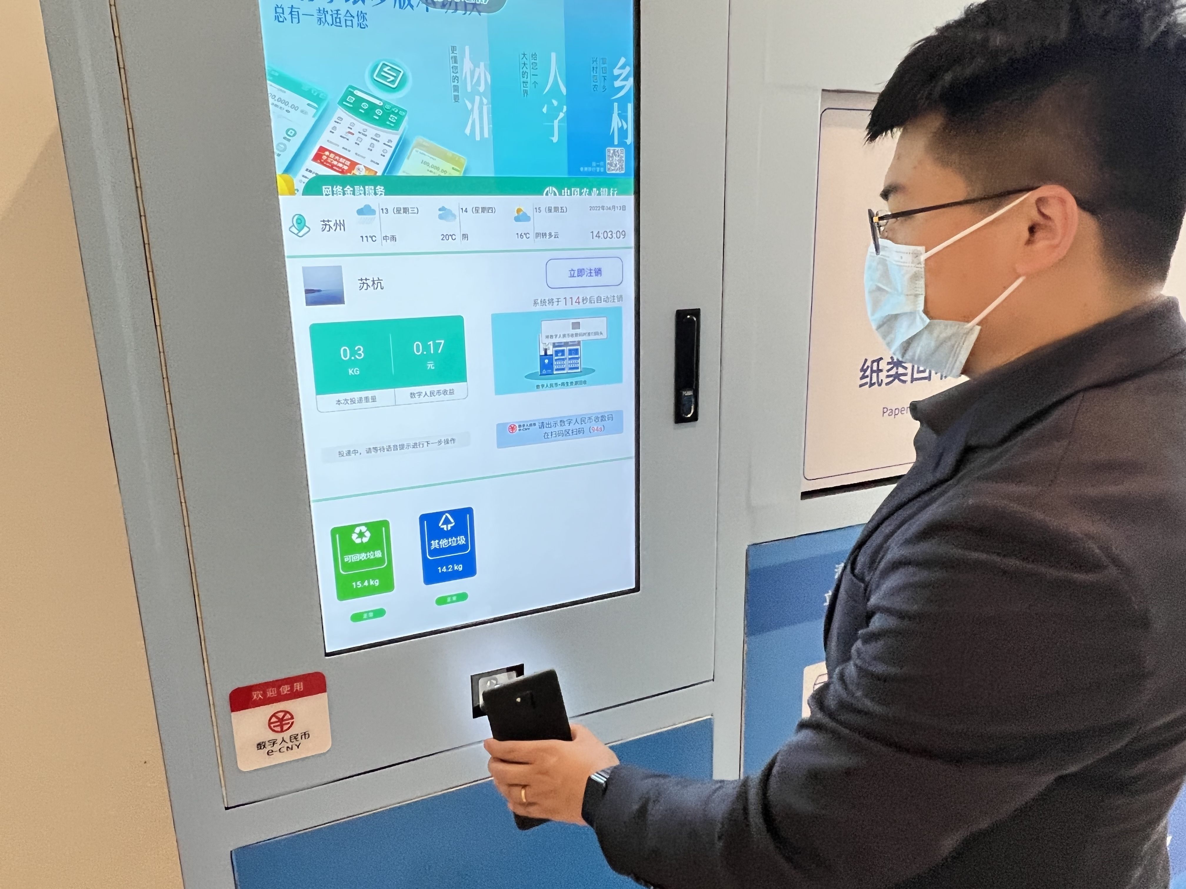 近日,在苏州高铁新城长三角国际研发社区启动区和相融大厦,一款“数字人民币+智能再生资源回收”设备正式投入使用,为市民生活带来极大便利。