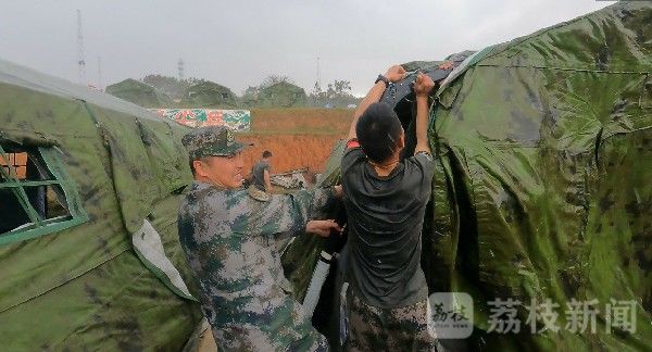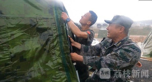 突如其来的暴雨瞬间将官兵的衣服淋湿,却浇灭不了官兵们高涨的热情。
