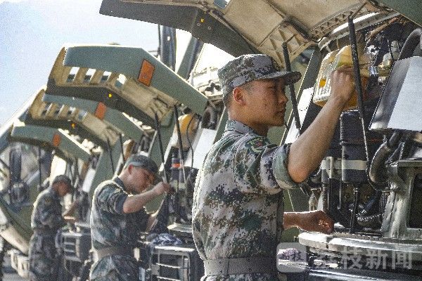 除锈、清洗、维修、刷漆……在车场里,官兵们分工明确,各项工作有条不紊,对油路、发动机、液压装置和电气系统等关键部位进行反复调试。