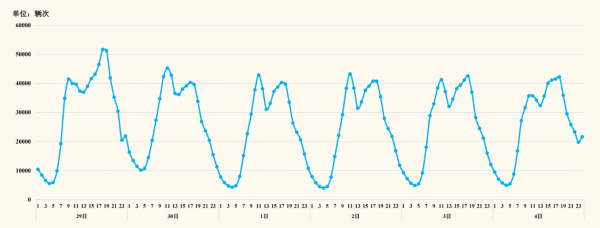 五一期间,预计全省高速公路路网流量每天基本呈现“双峰”变化趋势,早高峰8:00-11:00,晚高峰16:00-19:00。