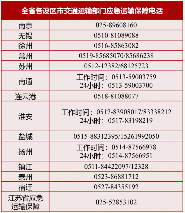 出行前,可通过关注“江苏交通”“江苏高速”“江苏交警”“江苏高速96777”微信公众号等,还可收听江苏交广网(FM101.1),登录江苏交通出行网(http://gzcx.jscd.gov.cn)、“e行高速”手机APP,以及通过高速公路沿线可变情报板、电子显示屏、高德、百度地图等了解路况信息。