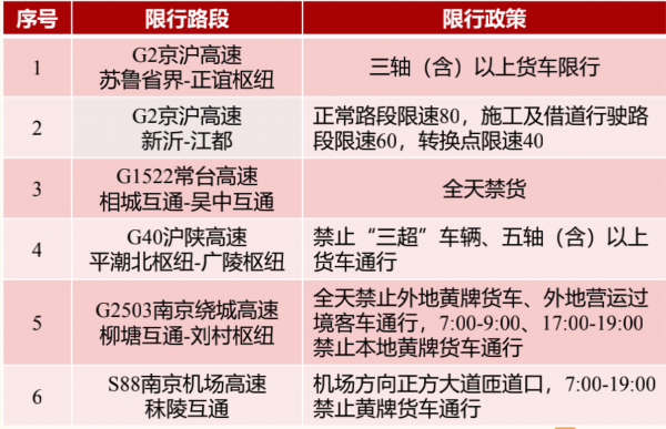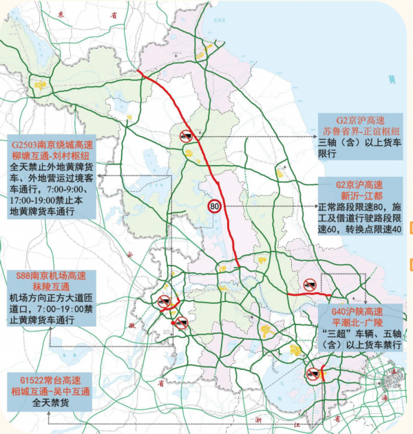 五一期间,江苏高速对危化品运输车、大件运输车全路网全时段禁行,部分重要路段、节点实施交通管制政策,相关车辆假日期间勿进限行路段。