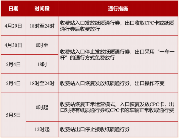 2022年五一假期高速公路:实施7座以下(含7座)客车免费通行;小客车免费通行时间为:2022年4月30日0时—2022年5月4日24时。