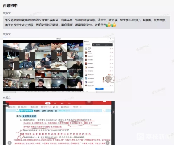 苏州市吴江区梅堰中学班主任协助任课老师督促好学生每天的出勤情况及在线学习认真度。校长室、教务处和行政值班领导进行随堂巡课,对各班级学习情况进行在线文档统计、公示和提醒,确保人人参与线上学习,全力助每位学生在线学习“不掉线”。“一个不能溶下”的暖心服务,赢得了家长的支持和肯定。家长来信说:“停课不停学,对于老师们来说,工作更为繁琐,老师们还能将工作做得如此细致,背后一定付出了大量的努力。