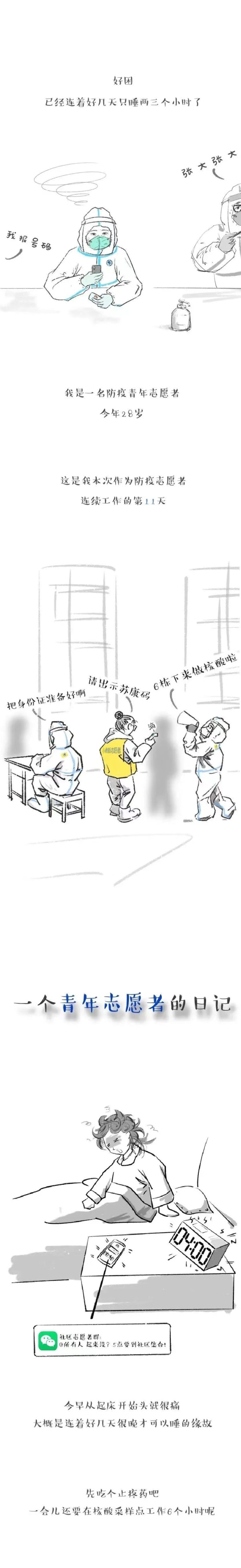 苏州高新区第一初级中学教育集团美术组老师徐任,看到身边抗击疫情的伙伴们,想到可以用自己特长——美术记录下“大白”的一天,用漫画形式让更多人了解志愿者工作的艰辛。经不断修改磨合,终于创作出了这组漫画作品,并被苏州团市委、苏州高新区团委等官方微信转发。
