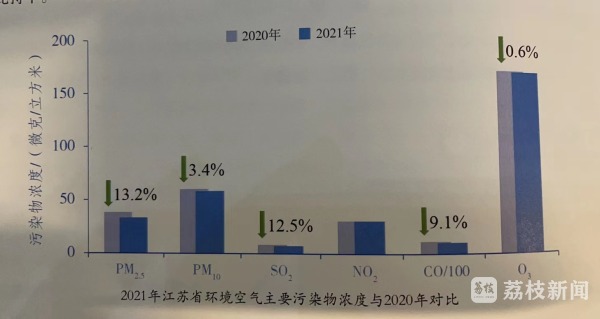 今天(4月28日)上午,省政府新闻办举行新闻发布会,通报了2021年江苏生态环境状况。记者了解到,在全省经济高质量发展、GDP增量全国第一的情况下,去年,全省PM2.5年均浓度实现2013年以来“八连降”,首次降至国家环境空气质量二级标准限值以下。过去一年,江苏先后开展首季争优、春夏攻坚等专项行动,全年完成治气重点工程1万多项。在一系列治理措施的加持下,全省环境质量持续改善,PM2.5年均浓度降至33微克/立方米,优良天数比例提升至82.4%。