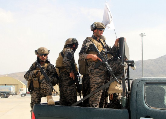 这是2021年8月31日在阿富汗喀布尔机场拍摄的塔利班人员。新华社发(塞夫拉赫曼·萨菲摄)