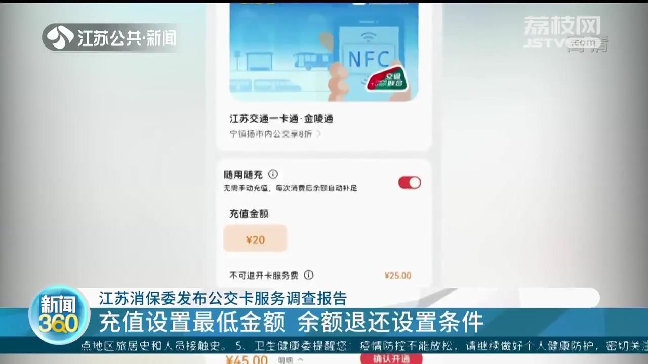 体察中还发现,部分城市公交卡服务便利度较低,服务信息公示不完善。扬州、南通、无锡的记名公交卡无法挂失以及NFC电子公交卡开卡服务费过高等情况。对于调查发现的问题,江苏省消保委认为,相关部门应当优化公交卡供应、信息公示等服务内容,提升消费者的体验感和满意度。