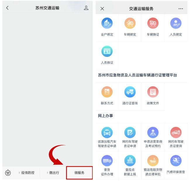 ②道路运输证、从业资格证到期换证:“苏州交通运输”公众号-微服务。