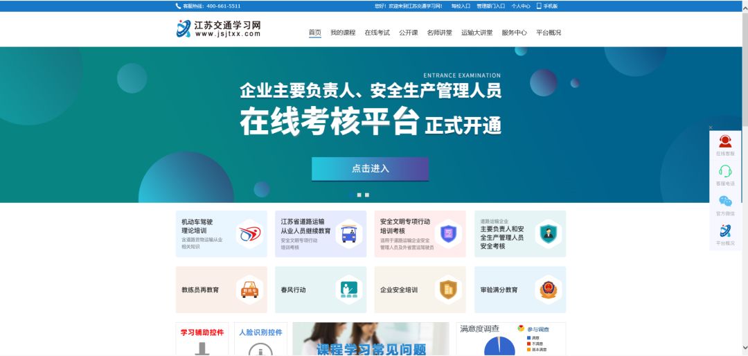 ⑤从业资格证继续教育学习、道路运输企业主要负责人和安全生产人员考核:江苏交通学习网(http://www.jsjtxx.com)。