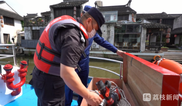 清名桥历史文化街区依托水网河道而建,由于其中建筑都是木质结构的特殊性,无锡消防救援支队专门购置消防艇,每天定期通过河道进行巡查,消防艇上除了配备有水炮外,还设置有其他消防设施,随时应对火灾等意外的发生,在检查过程中,监督员也上到消防艇上,对景区的消防安全进行了一次水上的安全巡查。