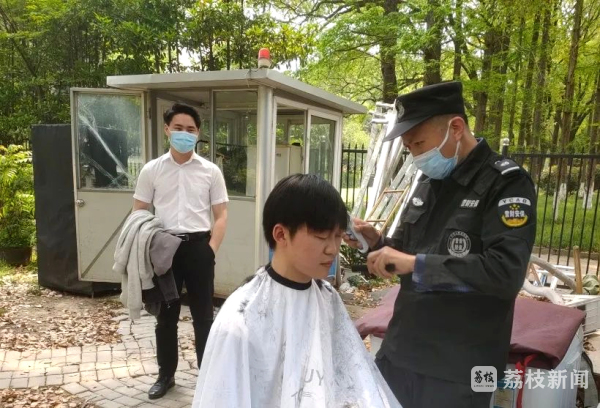 在理发的时候,余师傅的队长会安排其他同事接替他的岗位。为学生理发后,余师傅第一时间回到工作岗位,守好校园防线。“下次还来找您理发!”学子们笑着向余师傅告别,顶着清爽的发型,心情飞扬、轻松愉悦。
