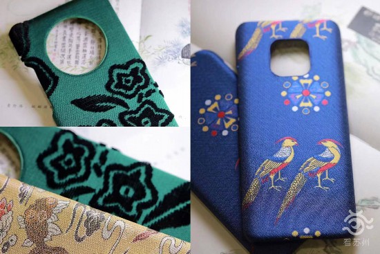 一番思索后,施意和团队创新研发出以传统的宋锦、苏罗、漳缎等为质地的手机壳,和市面上印刷而成的手机壳体验感全然不同,用户使用手机时能触摸到更为细腻的质感,也能让人身心愉悦。