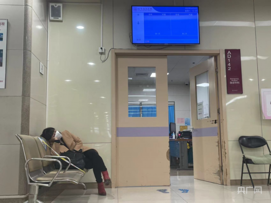 4月30日中午,北京朝阳医院急诊科候诊区(记者白杰戈 摄)