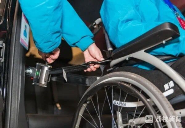 打开车门放置无障碍踏板,能够将轮椅直接推上车;车内空间足够大,后排座椅足够宽,预留轮椅专用空间、12°斜坡踏板、4向轮椅固定装置、扩音助听辅助系统、CN95健康座舱认证……无障碍网约车细节到位,体现满满温情。